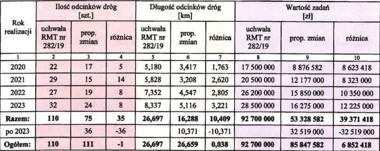 Tabela przedstawiająca porównanie zmian z dotychczas obowiązującym PBDL na lata 2020-2023